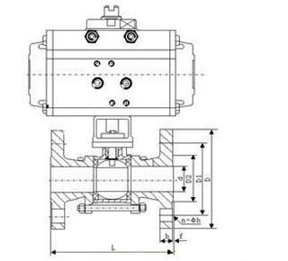 進口氣動三片式法蘭球閥 外形結構圖